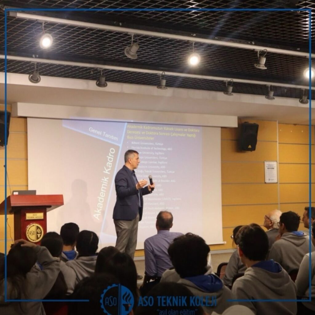 CoVE STEM Europe Projesi kapsamında, öğrencilerimizin kariyer farkındalığını desteklemek ve STEM alanlarına yönelik bilinçlerini artırmak amacıyla bugün ASO Teknik ve Mesleki Anadolu Lisesi’nde anlamlı bir akademisyen-öğrenci buluşması gerçekleştirildi. Bu kapsamda, Hacettepe Üniversitesi Elektrik ve Elektronik Mühendisliği Bölüm Başkanı ve Devreler ve Sistemler Anabilim Dalı Başkanı Prof. Dr. Atila Yılmaz, 12. sınıf öğrencilerimizle bir araya geldi.